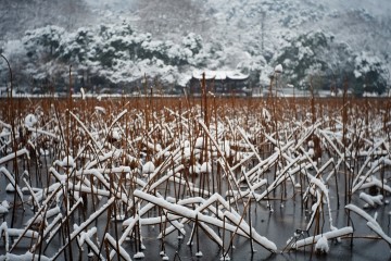 杭州西湖结冰了 残荷倒影如画(12...
